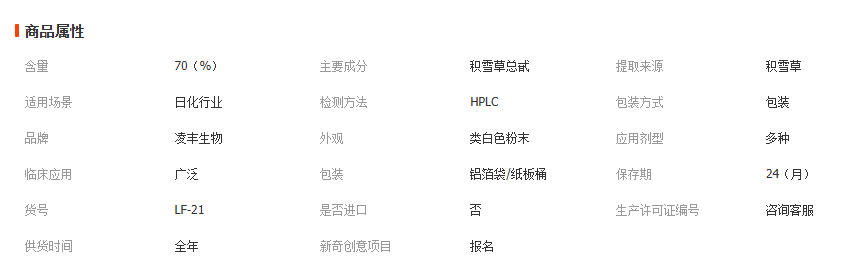 积雪草总甙70% 积雪草提取物 积雪草酸 羟基积雪草甙 化妆品原料 1千克