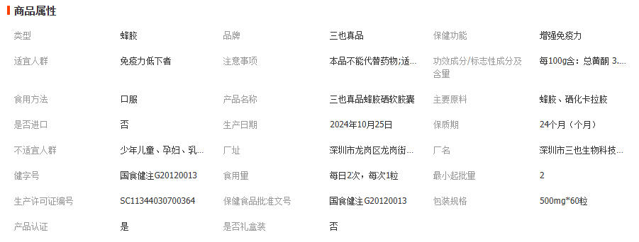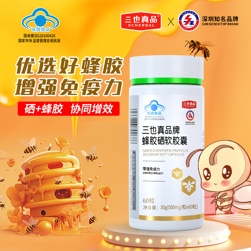 三也真品蜂胶硒软胶囊 增强免疫力 中老年人 蜂胶加硒 协同增效 5瓶