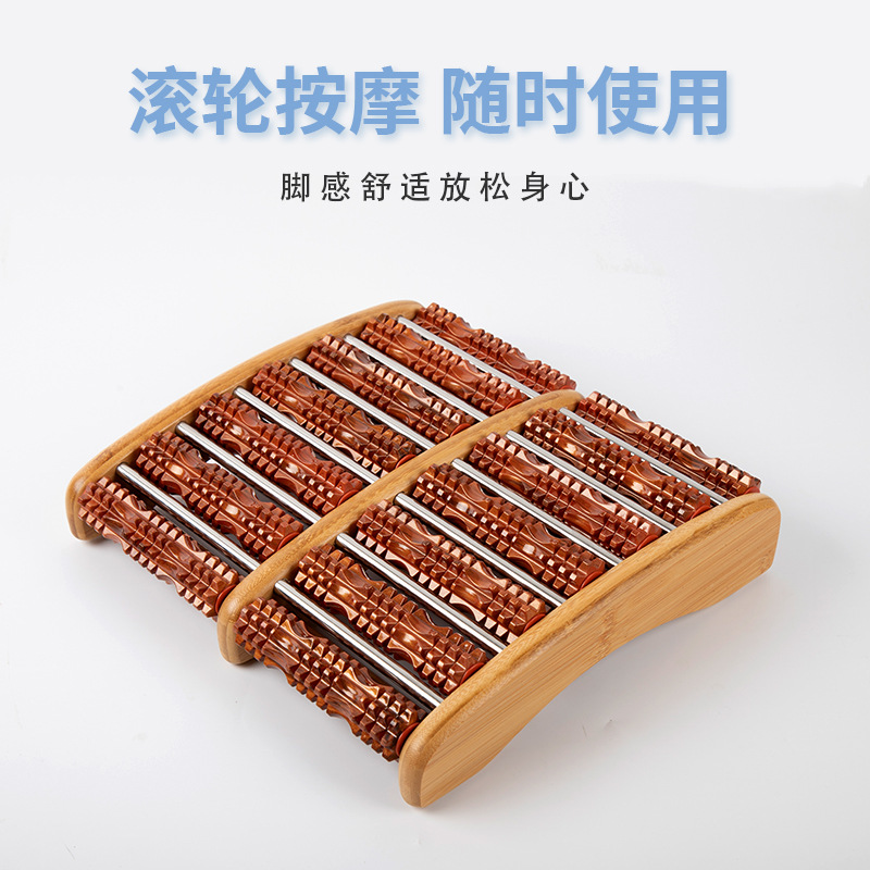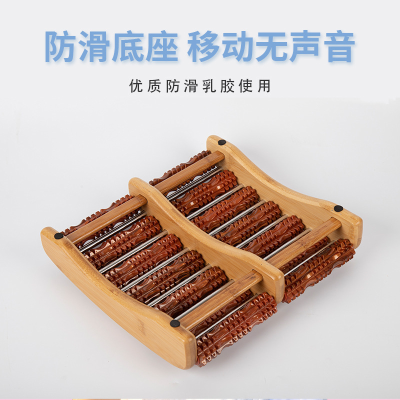 厂家直销实木制养身保健七排塑胶脚踏带钉滚轮脚底足底穴位按摩器 1个