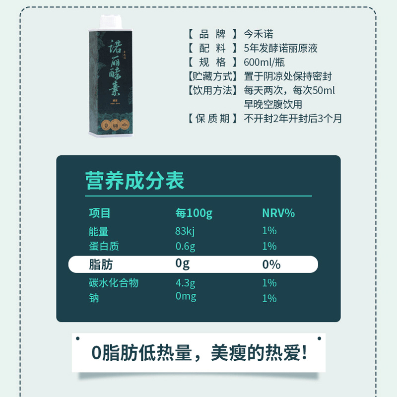 代理款诺丽果酵素原液诺丽果汁原浆浓缩精华无糖孝素五年酵600ml 1盒