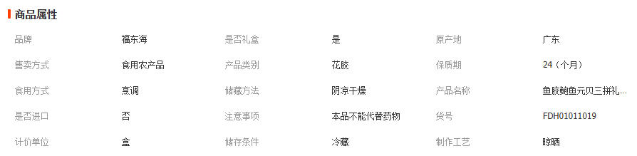 福东海鱼胶元贝海味三拼礼盒325克 黄花鱼胶花胶干贝干货年货礼品