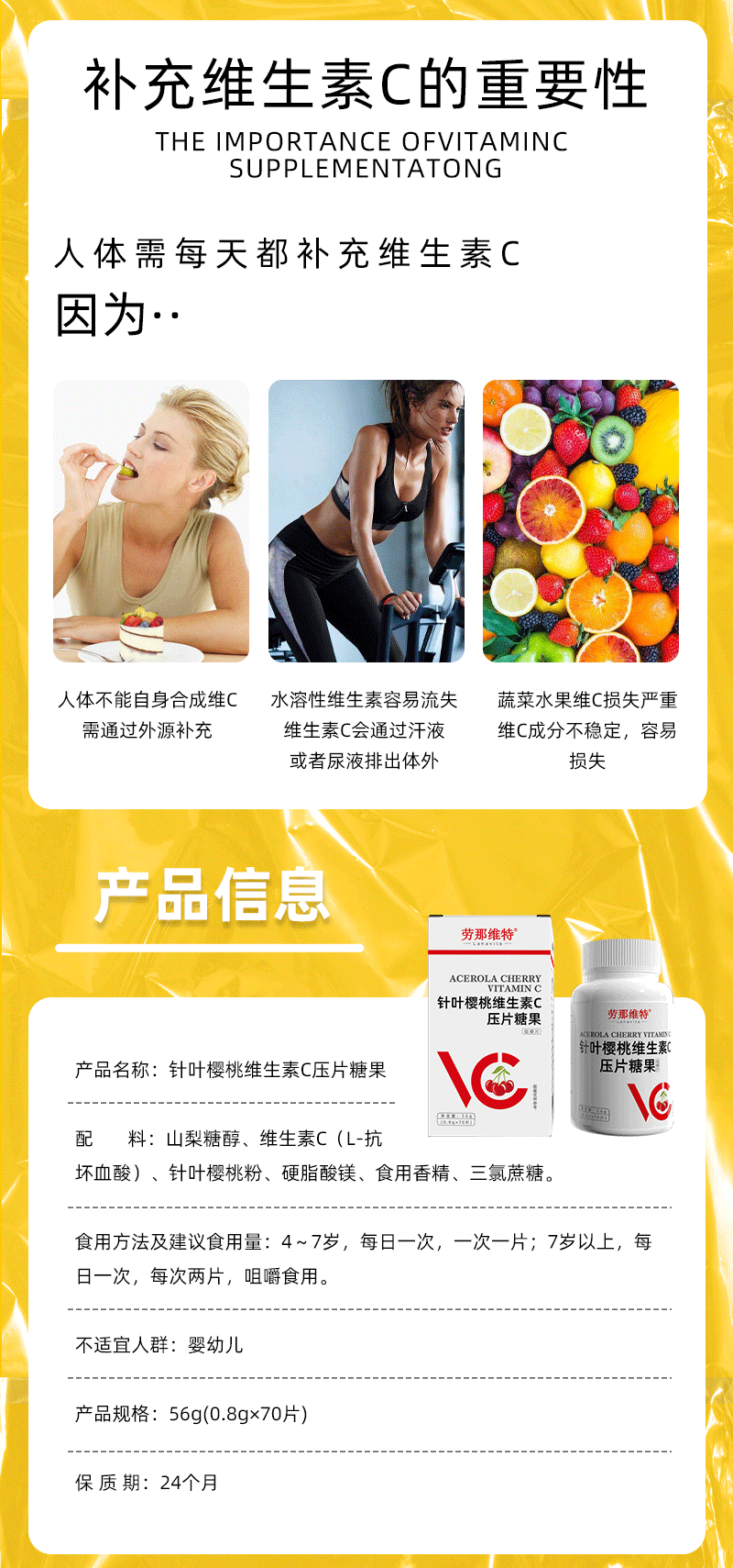 针叶樱桃维生素C复合维生素压片糖果vc咀嚼片针叶樱桃天然维生素c