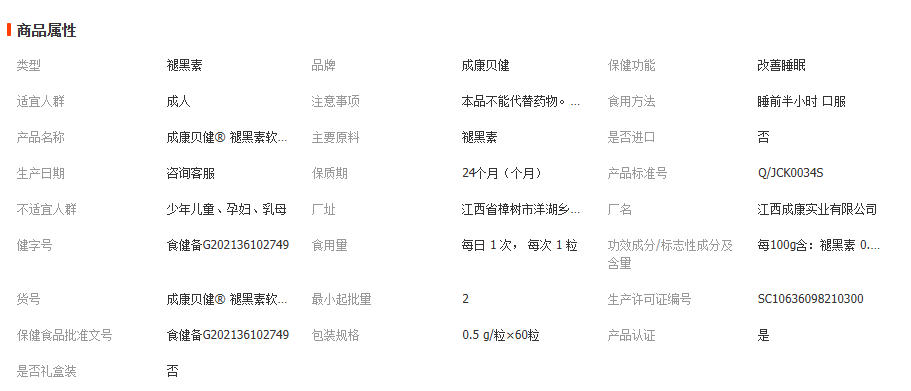 成康贝健® 褪黑素软胶囊改善睡眠成人男女中老年呵护睡眠褪黑素