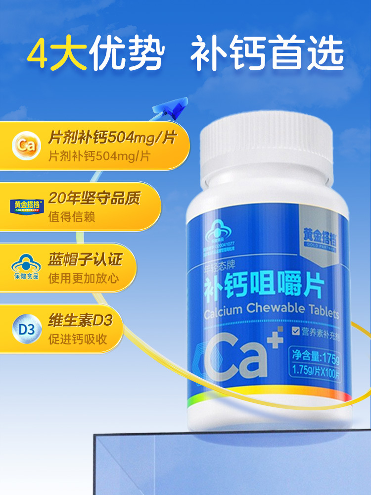 杭州康润健康科技有限公司发布的黄金搭档钙片补钙咀嚼片中老年人护关节疼痛腰腿疼骨质疏松保健品 1瓶图集库