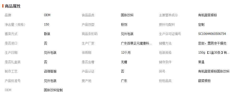 广东百草正元健康科技有限公司发布的甜菜根粉固体饮料高膳食纤维蛋白质营养健康健身固体饮料 1袋图集库