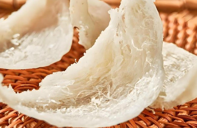 足干燕窝用手轻轻一掰就会轻松断开,质感松脆,断口不规则,常伴有碎末。