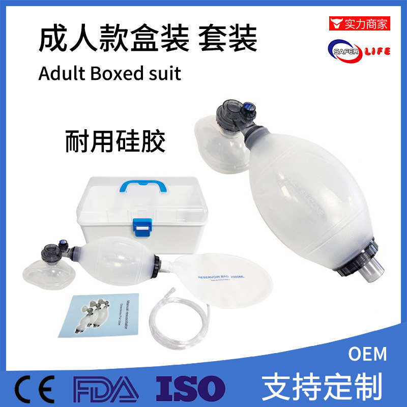 广州社福耐医疗器械有限公司发布的【成人款套装】家用人工复苏器呼吸气囊简易呼吸球囊急救复苏气囊图集库