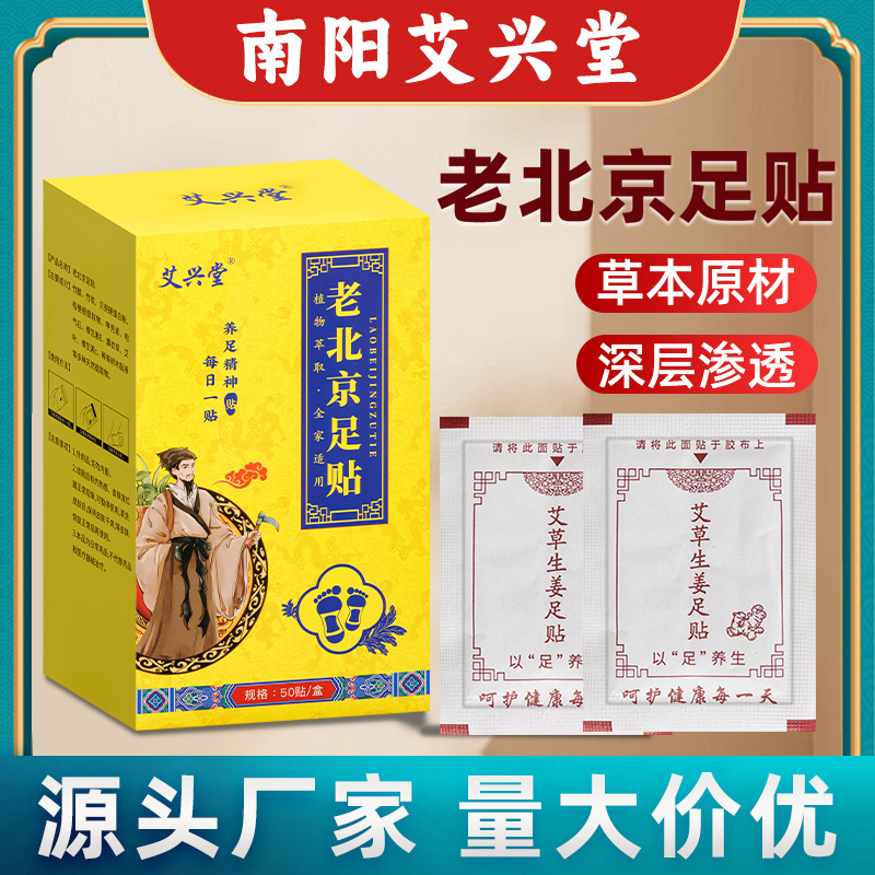 南阳市艾兴堂艾草制品有限公司发布的老北京足贴艾草贴足贴湿脚底气体内湿寒足贴足部护理50贴厂家批发图集库