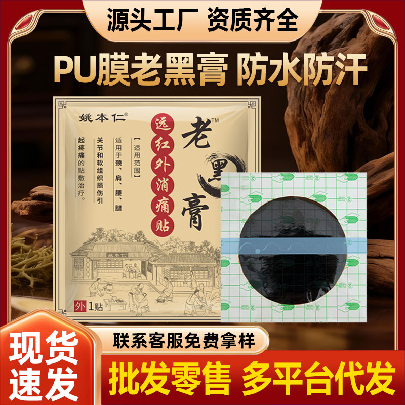 赣州德济堂医疗器械有限公司发布的膏贴工厂直供姚本仁PU膜老黑膏颈椎腰椎膝盖透骨贴加大加厚可代发图集库