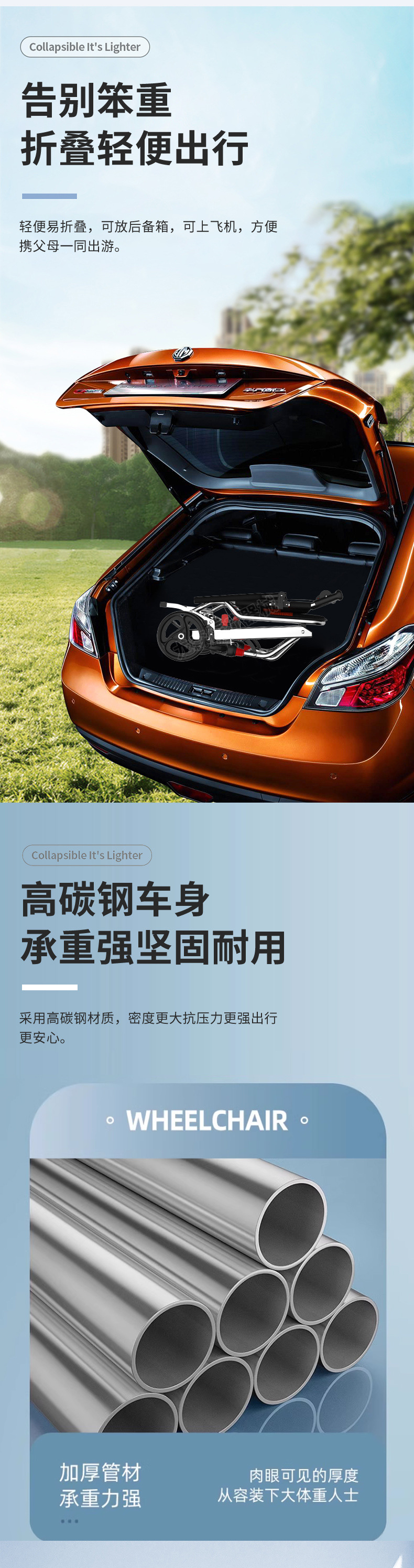 老人手动轮椅折叠轻便小旅行可上