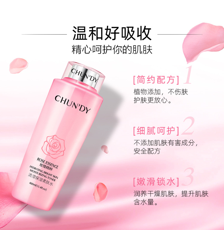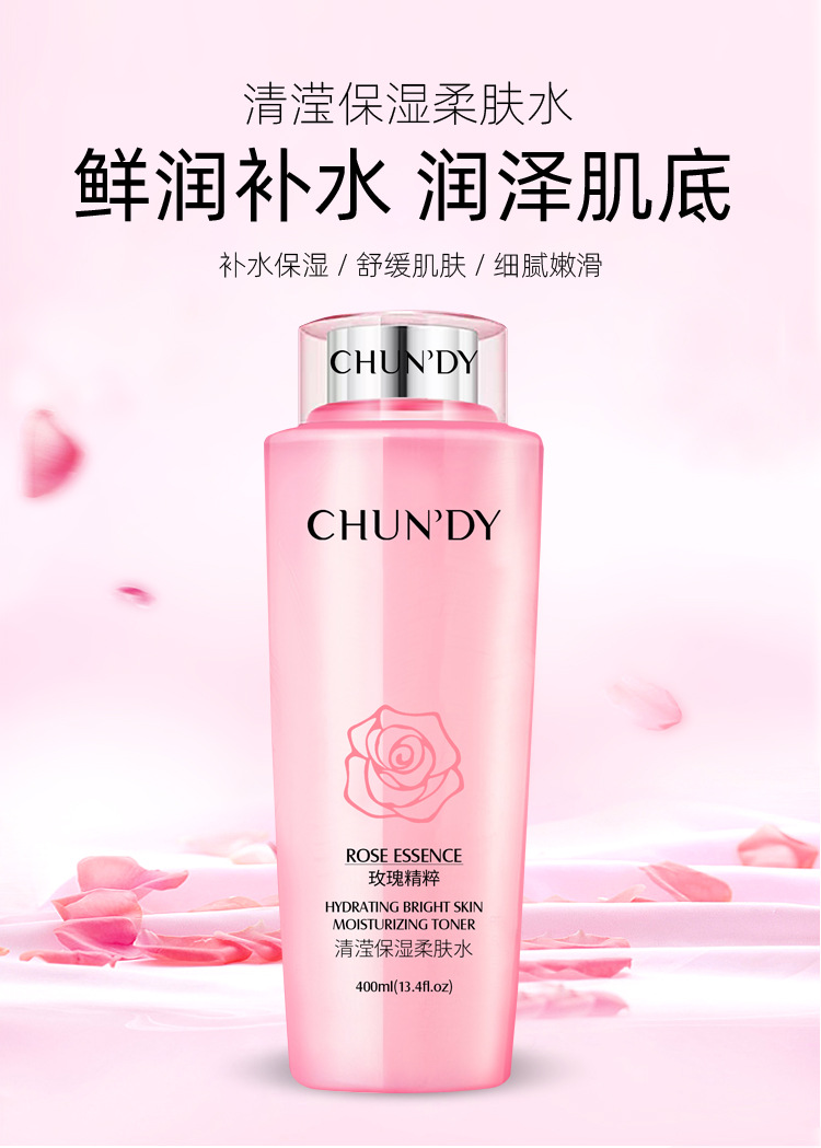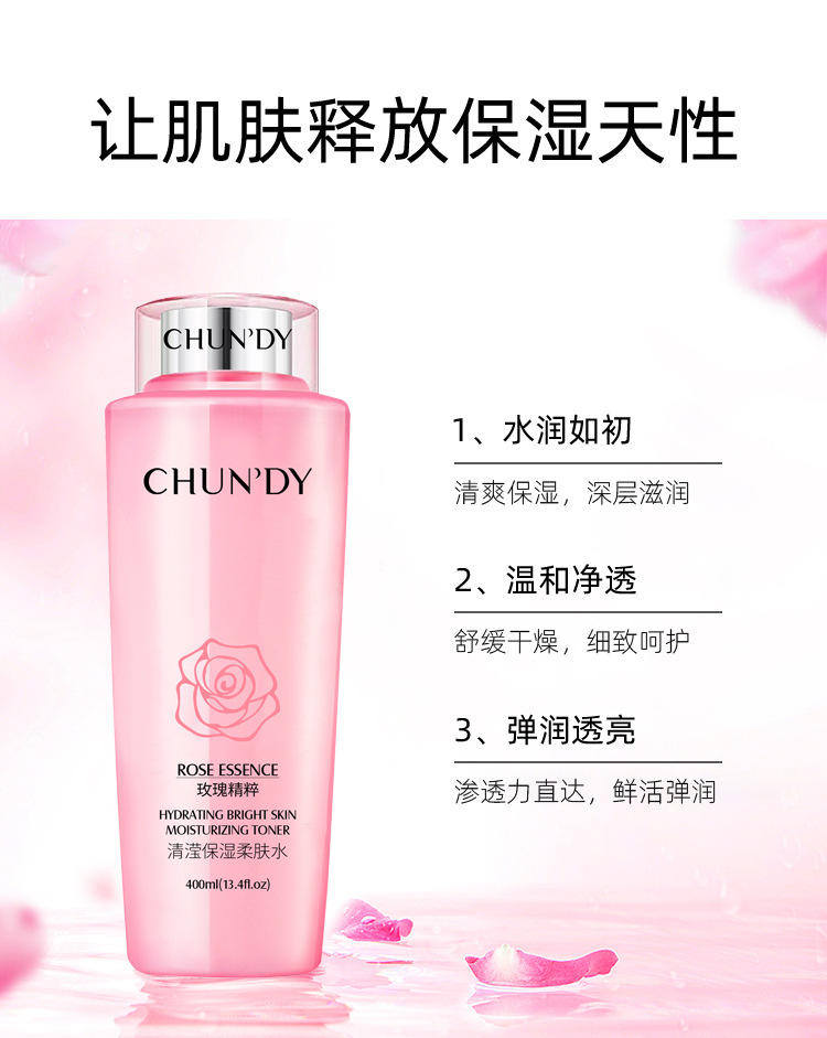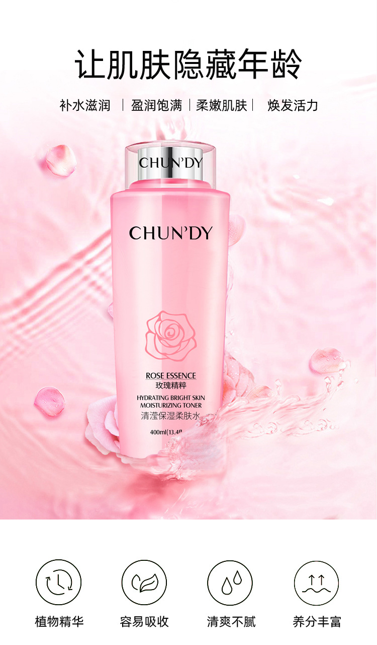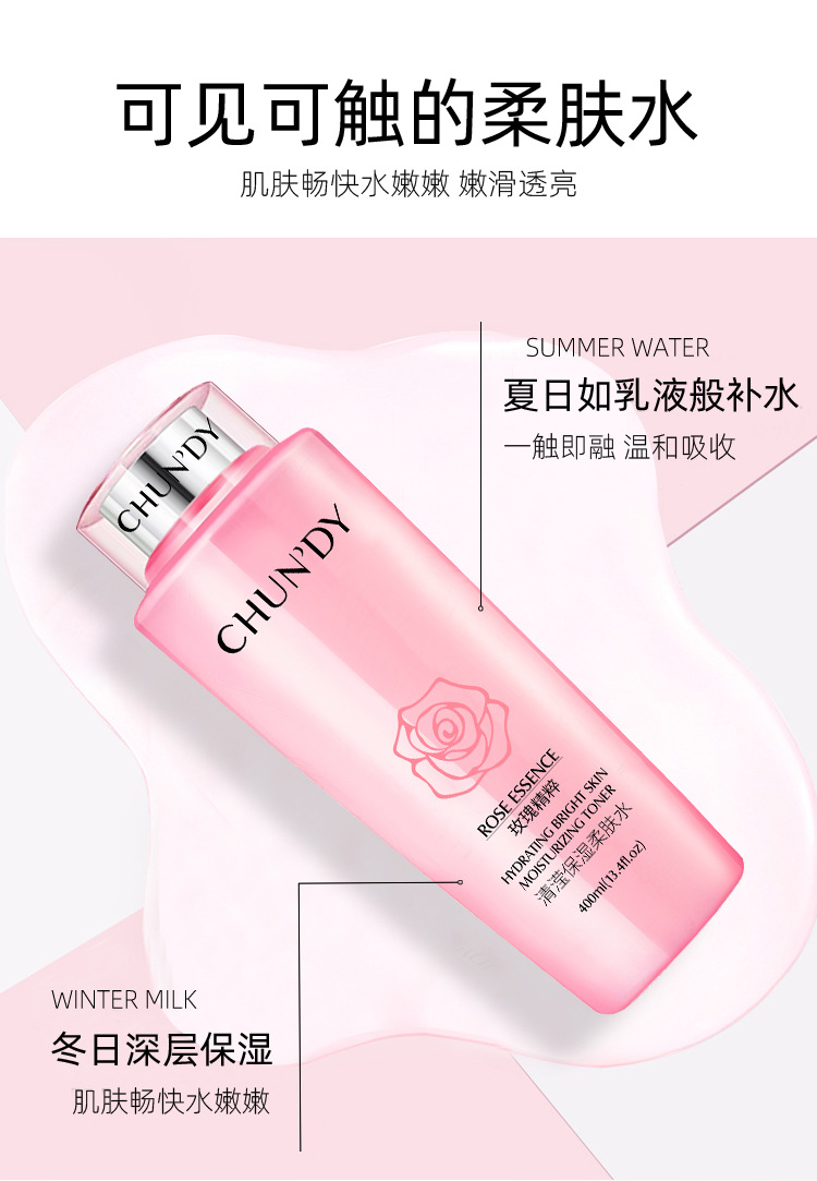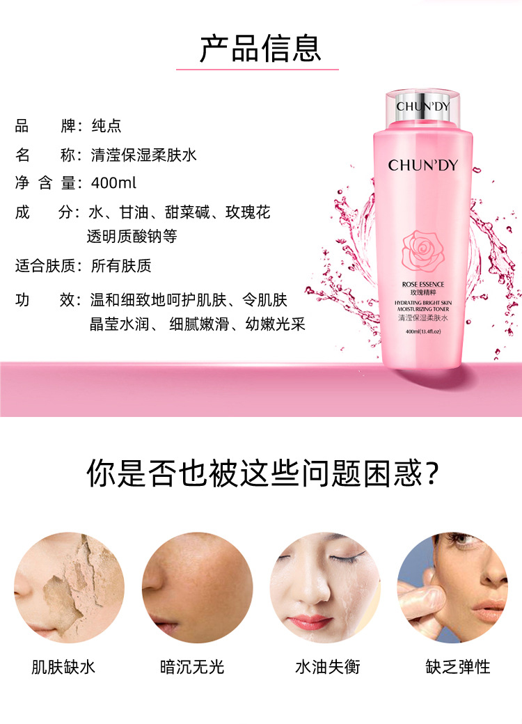 广州市升业生物科技有限公司发布的纯点玫瑰清滢补水保湿爽肤柔肤水 400ml大容量护肤品大 粉水化妆品图集库
