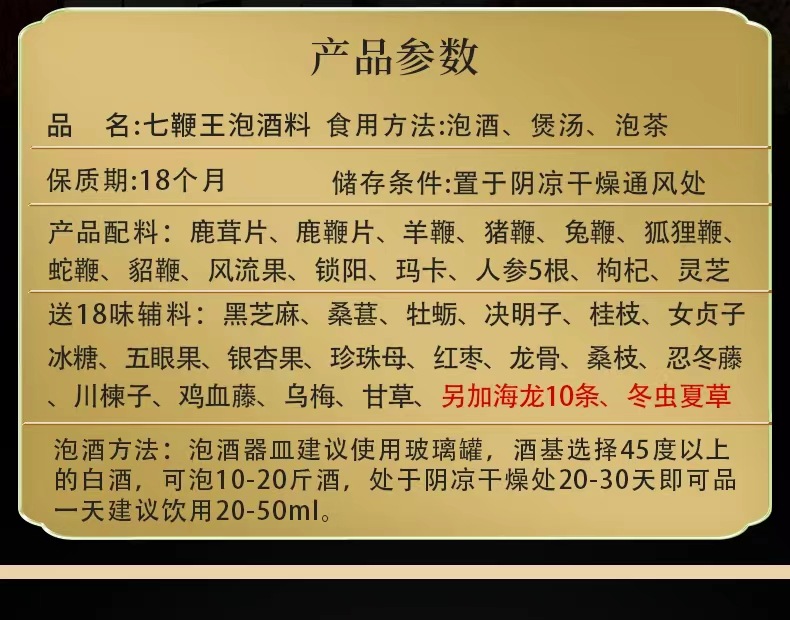 安徽补宜养健康产业有限公司发布的泡酒药材专用滋补养生十全肾人参鹿茸鹿鞭大补药酒配方男用 泡酒料图集库