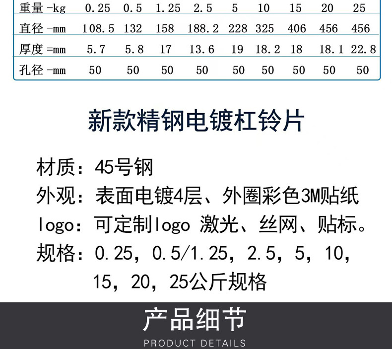 定州市大雄体育用品厂发布的纯钢电镀杠铃片 防锈深蹲卧推硬拉健身套装 健身房大孔径竞技片图集库